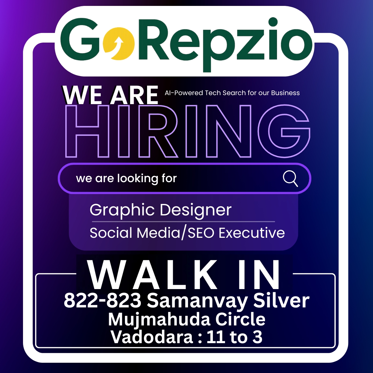 Vadodara, IndiaFull-timeWalk-in: 11 AM – 3 PM